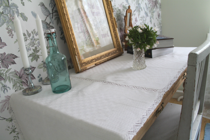 The boring room who became so much better. This is a room in my parents house that I live in when I visit them, it feels so much better so sleep in this room now when we've fixed it. A nice wall paper, less stuff and lovely curtains! What do you think?